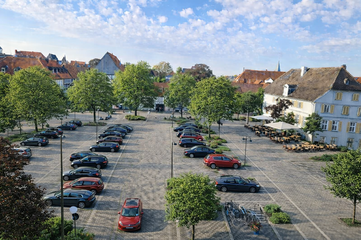 Faktisch: Die Auslobung fordert insgesamt den Nachweis von 15 PKW-Stellplätzen, die vorzugsweise an der Rathausstraße realisiert werden sollen. Aktuell zählt der Marktplatz ca. 93.